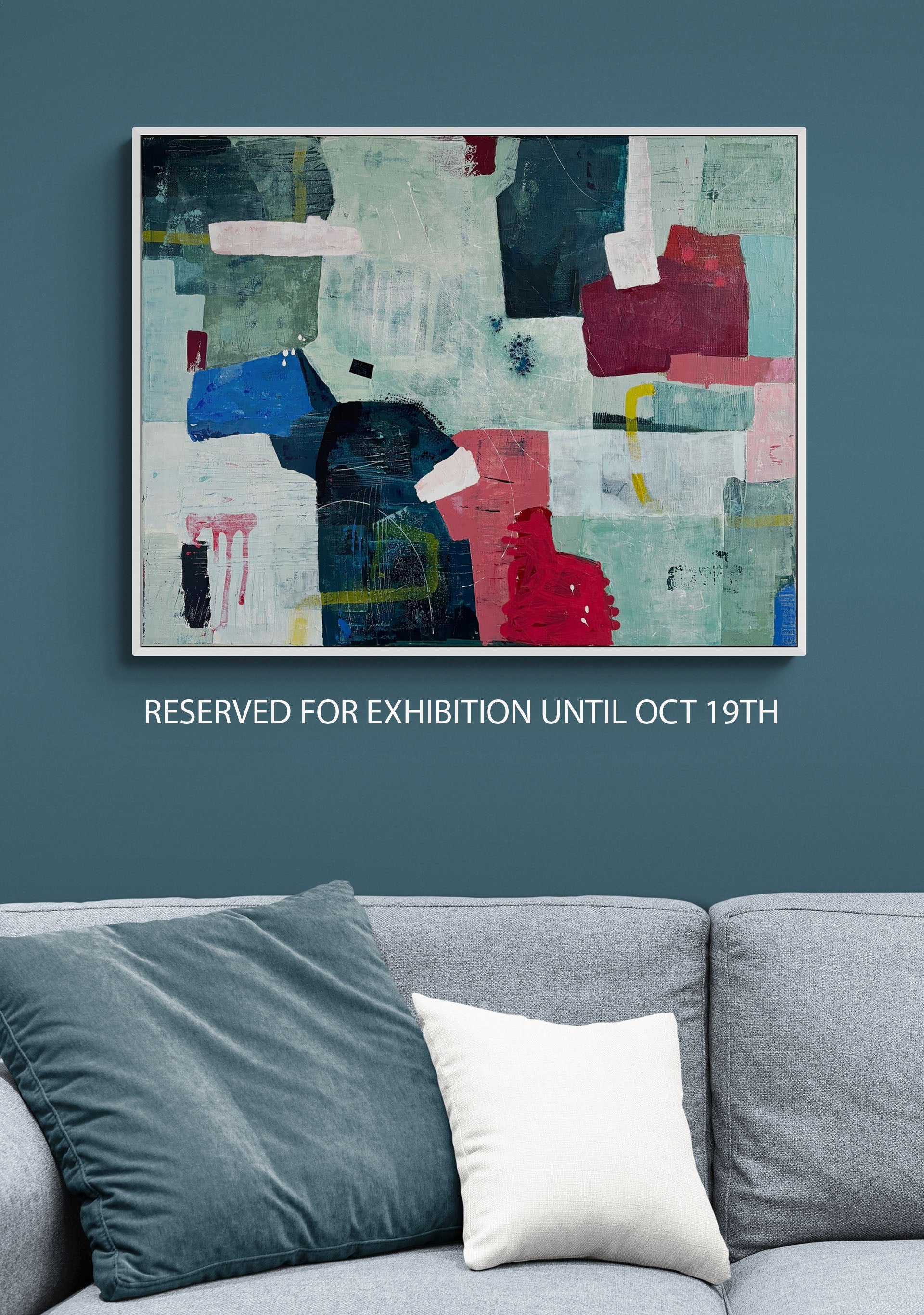 One of four paintings in my "Playful Summer Series' - delicious colours and an invigorating composition celebrating joyful, sunny times. The piece features architectural forms in contrast with organic shapes, as well as rich textures and details.